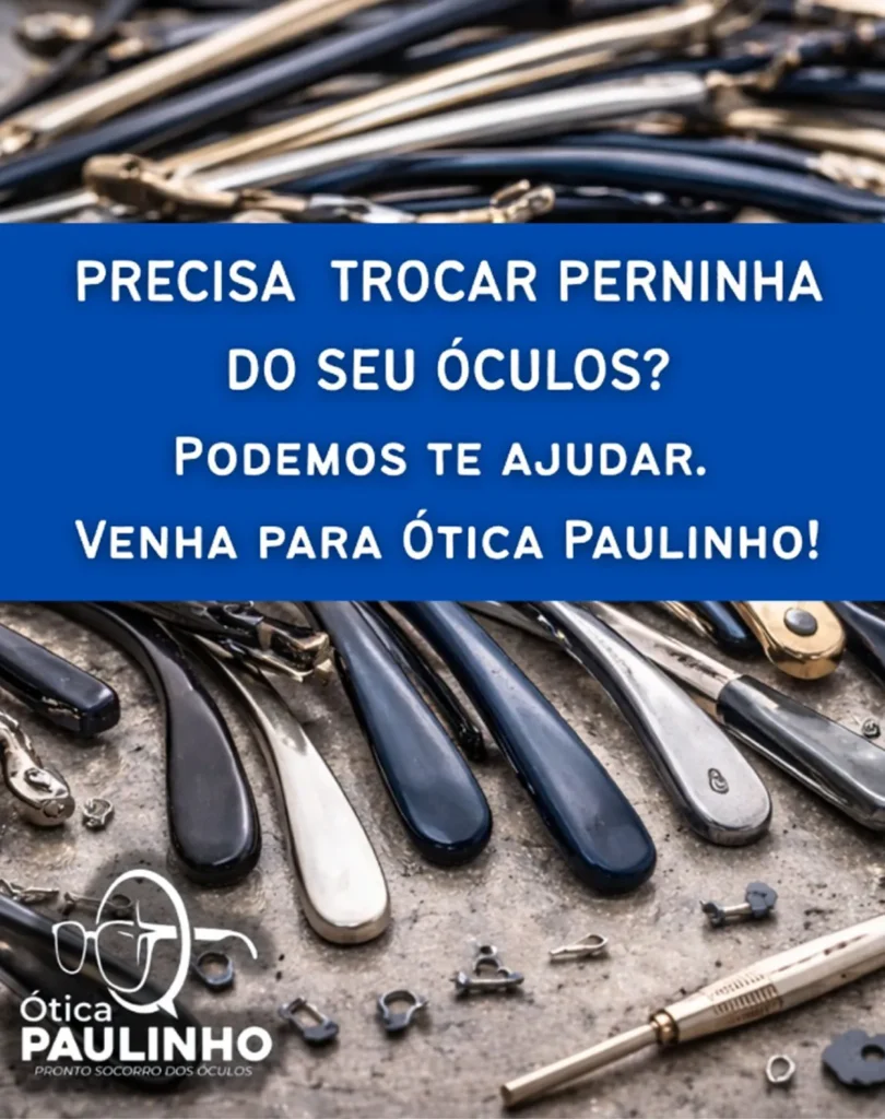 A Ótica Paulinho – Pronto Socorro dos Óculos oferece conserto de óculos, ajuste de armações, troca de peças e serviços ópticos especializados. Atendimento rápido e profissional com mais de 20 anos de experiência.